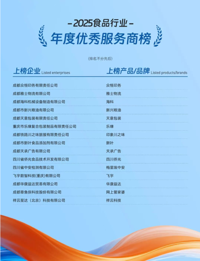 2025年12月23日,“破界共生,味来已来”2025食品行业创新百味论坛暨榜单盛典在成都海湾大酒店隆重举行。本次活动由第一食品资讯发起,多省市行业协会联合支持,是食品行业极具影响力的年度盛事。梅里埃中安(四川省中安检测有限公司)凭借在食品检测服务领域的专业积淀与行业贡献,荣获“2025食品行业年度优秀服务商”殊荣!
