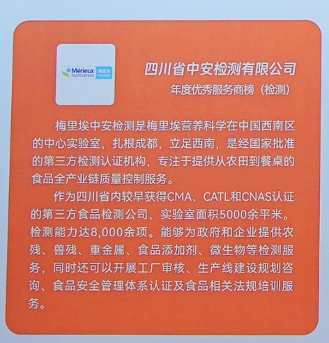 梅里埃中安检测|荣获2025食品行业年度优秀服务商