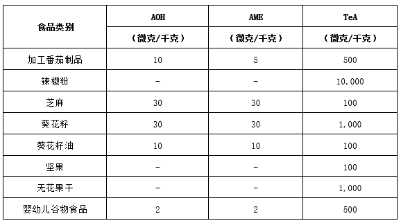 2022年4月,欧盟启动对AOH、AME和TeA的专项监测,涵盖加工番茄制品、辣椒粉、芝麻、葵花籽、坚果、婴幼儿谷物食品等。
