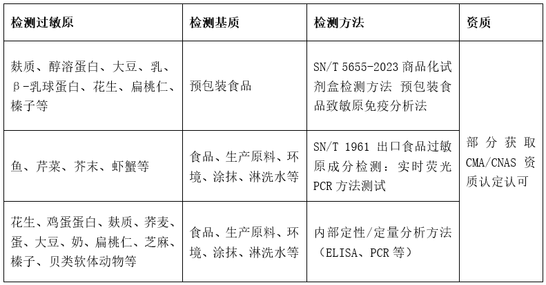 我们采用先进的检测方法,包括SN/T 5655-2023商品化试剂盒检测方法、SN/T 1961 出口食品过敏原成分检测和内部定性/定量方法(ELISA、PCR等),且部分检测项目已获得CMA/CNAS认可,确保检测结果的准确性和可靠性。