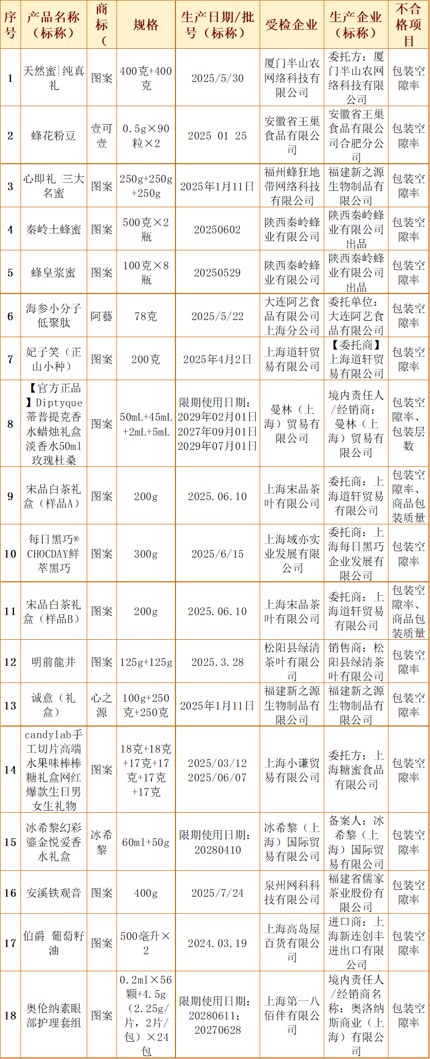 “回头看”核心目的是对前期监督抽查中发现的不合格产品的同一生产者或销售者进行再次跟踪抽查,检验其生产、销售的商品包装是否已按要求整改。依据GB 23350-2021《限制商品过度包装要求 食品和化妆品》(含第1、2号修改单)等强制性国家标准,对包装空隙率、包装层数、商品包装质量等项目进行了检验。抽查结果显示,经过前期整改指导,大多数企业已为包装进行“瘦身”,但仍有少数企业整改不到位。