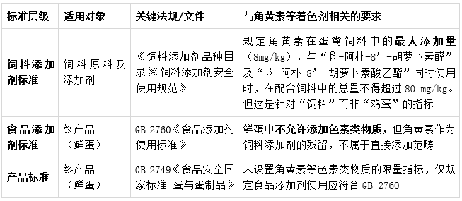 天然本底来源:如果饲料中含有万寿菊、辣椒及藻类等富含天然类胡萝卜素的原料,蛋黄中同样可能检出微量的角黄素。