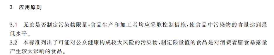首先,标准是底线,而不是"上限",食品安全国家标准的本质,是保障公众健康的"最低要求"。其次,没有限量不代表没有要求,GB 2762食品安全国家标准 食品中污染物限量中应用原则明确指出: